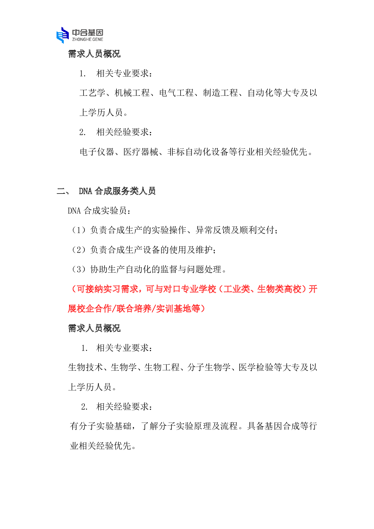 中合基因科技(常州)有限公司人才招聘需求
